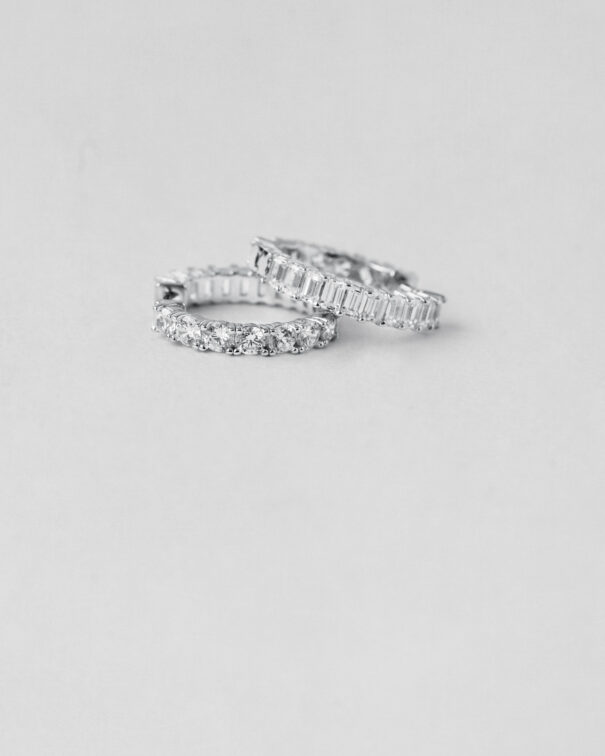 Lovelei’s Double Sided Hoop Earrings are handcrafted in 18k gold, featuring emerald and round cut ethical lab-grown diamonds. The diamonds are set on each half of the hoop, creating the possibility of wearing the earrings in two ways, either showing the emerald cut or round-cut diamonds. It does not get more versatile than with the Double Sided Hoop Earrings.